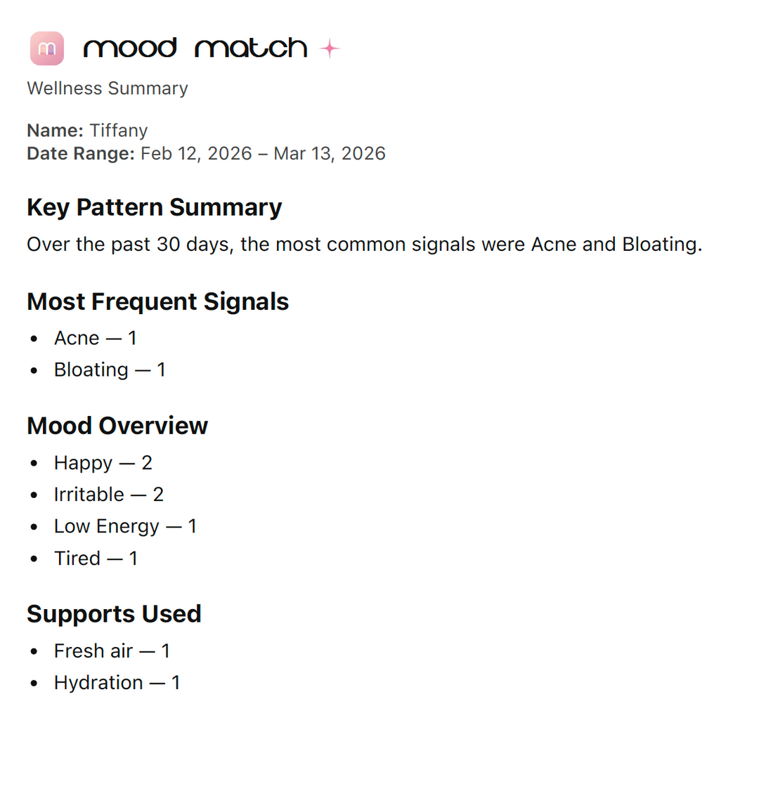 Instead of guessing what your body needs, Mood Match helps connect mood, patterns, and wellness support in one simple experience.